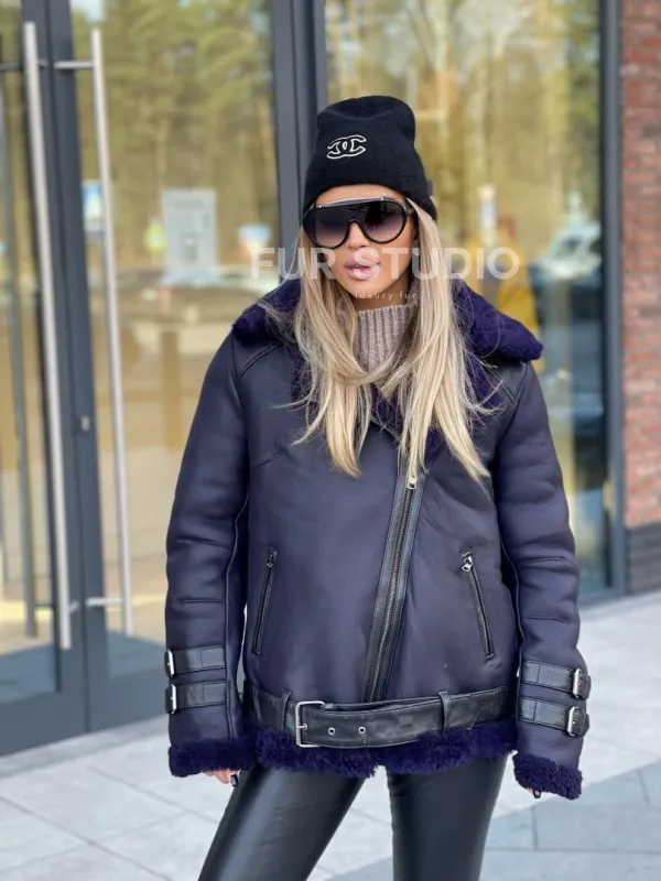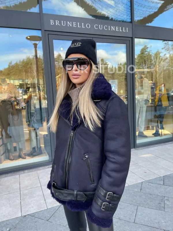 Натуральная овчина позаботится о комфортной температуре тела в любую непогоду и холода. Широкие рукава не сковывают движения, что очень удобно для тех, кто водит машину. Добавьте в образ стильный рюкзак и грубые ботинки - будете выглядеть дерзко, но очень женственно. Купить авиатор из натуральной овчины в синем цвете могут девушки, которые следят за модой и не боятся экспериментировать.