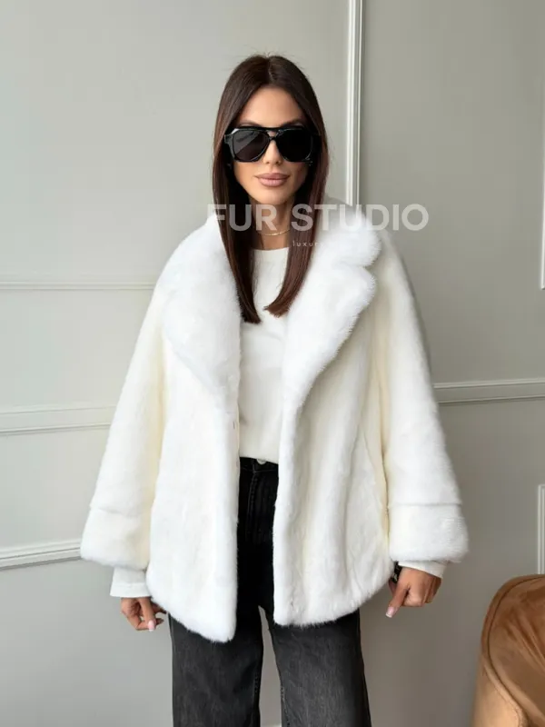 Белая шуба из скандинавской норки 102746