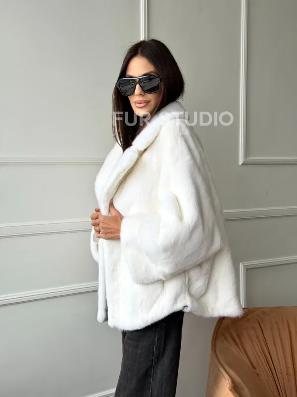 Мех данной шубы аукционная норка, цвет белый. Предлагается в размерах от 42 до 52. Длина модели 60-65 см, что выгодно подчеркивает фигуру девушек. Эта модель идеально подойдет для девушек и женщин, предпочитающих роскошные натуральные меха.