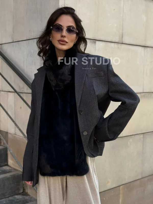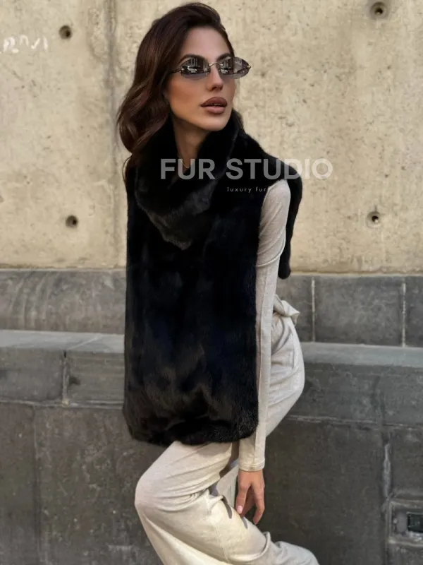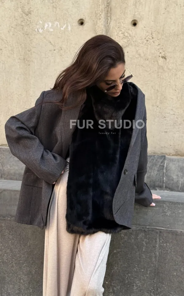Черная норковая манишка 102213
