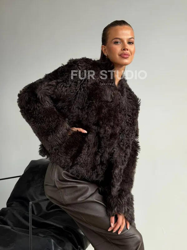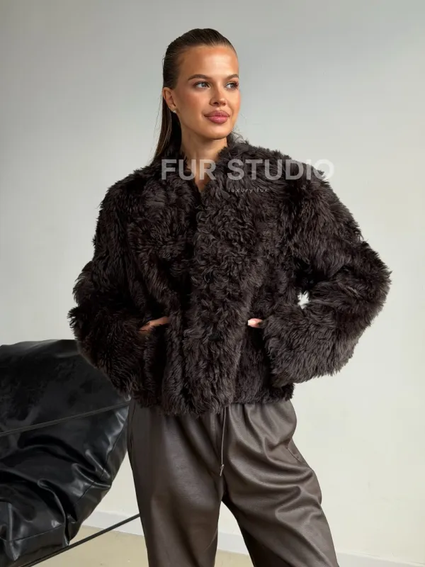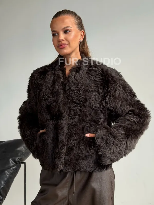 Дубленка кроп-топ из овчины калган 102600