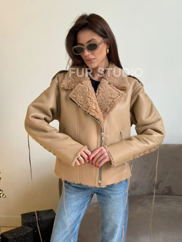 Дубленка - куртка со шнуровкой на спине доступна для покупки в нашем шоуруме Furs Studio в , а также предлагается удобная доставка во все города России. Обогатите свой гардероб этой дубленкой, которая прослужит вам многие годы, добавив немного роскоши в ваш повседневный образ.