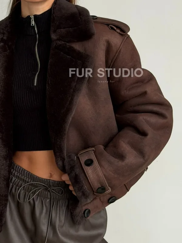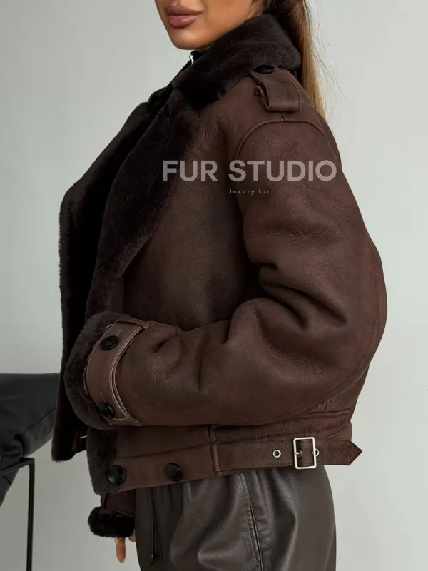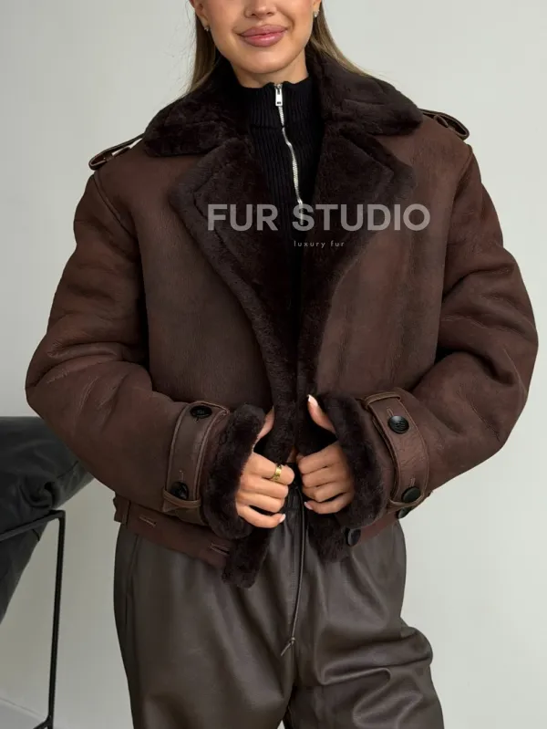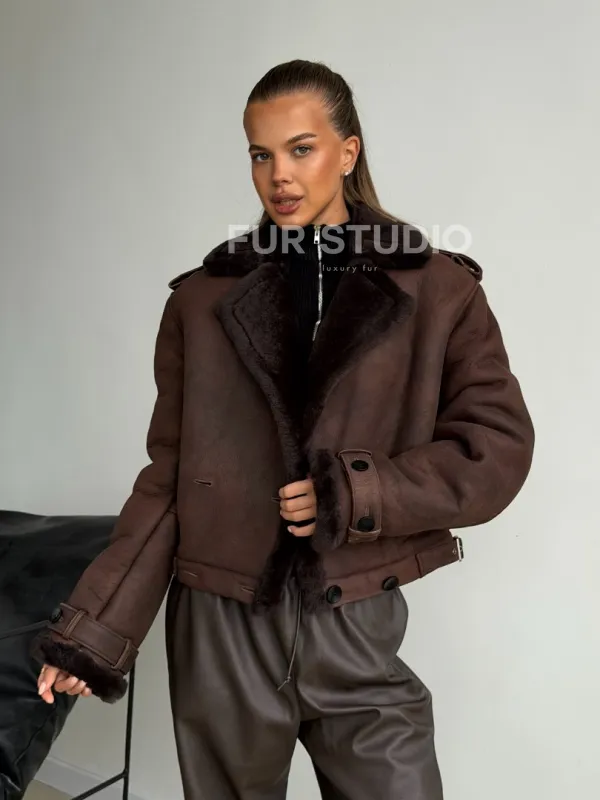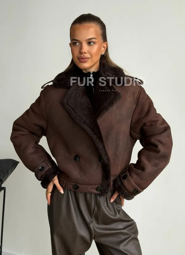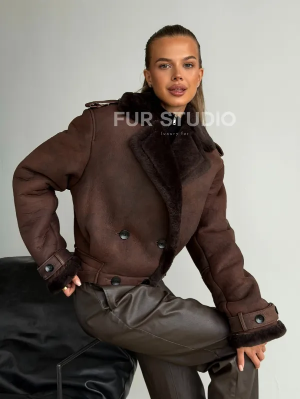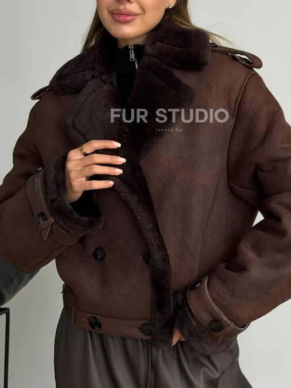 Двубортная короткая дубленка 102606