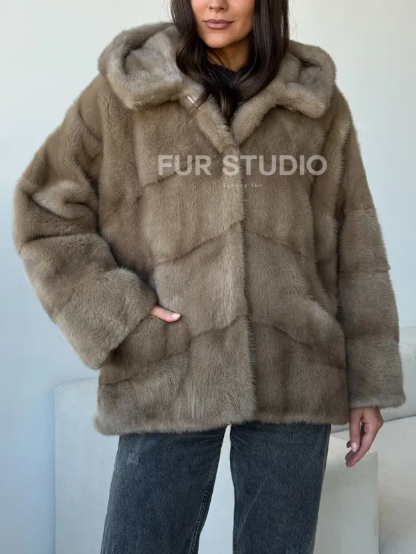 Короткая норковая шуба с капюшоном 102498