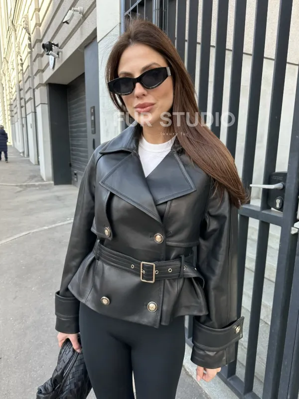 Куртка из кожи черного цвета доступна для покупки в нашем шоуруме Furs Studio в , где также предоставляется удобная доставка во все города России.