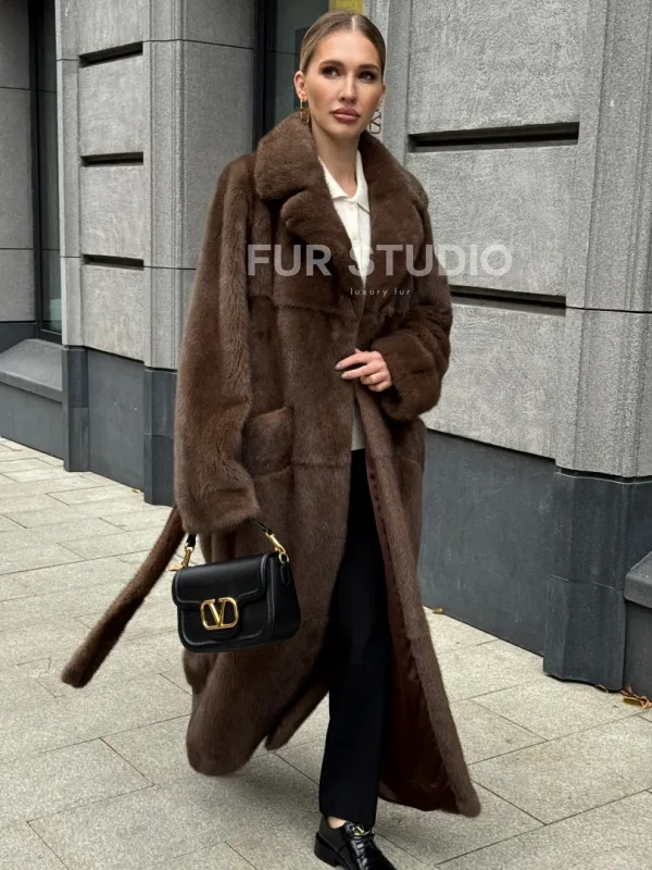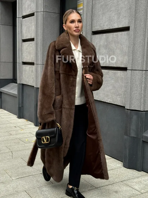 Норковая шуба - цвет соболь 102371