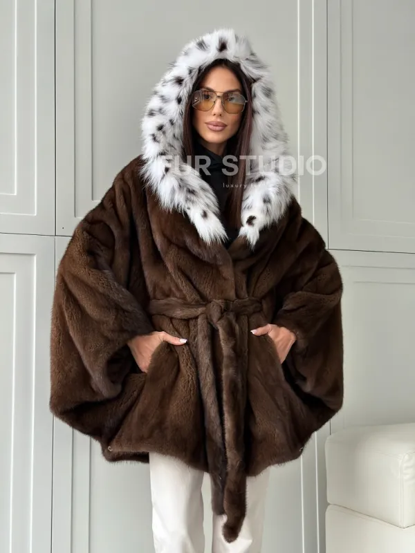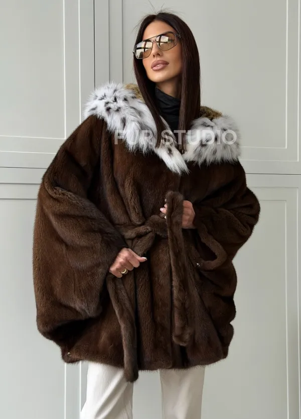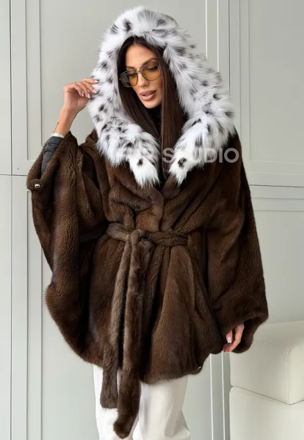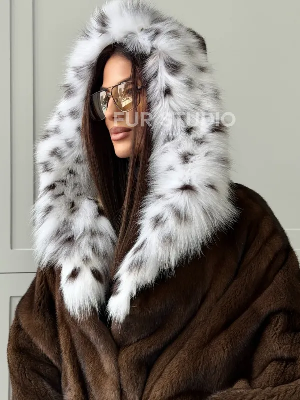Норковая шуба с капюшоном по рысь 102819