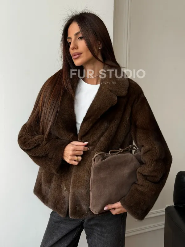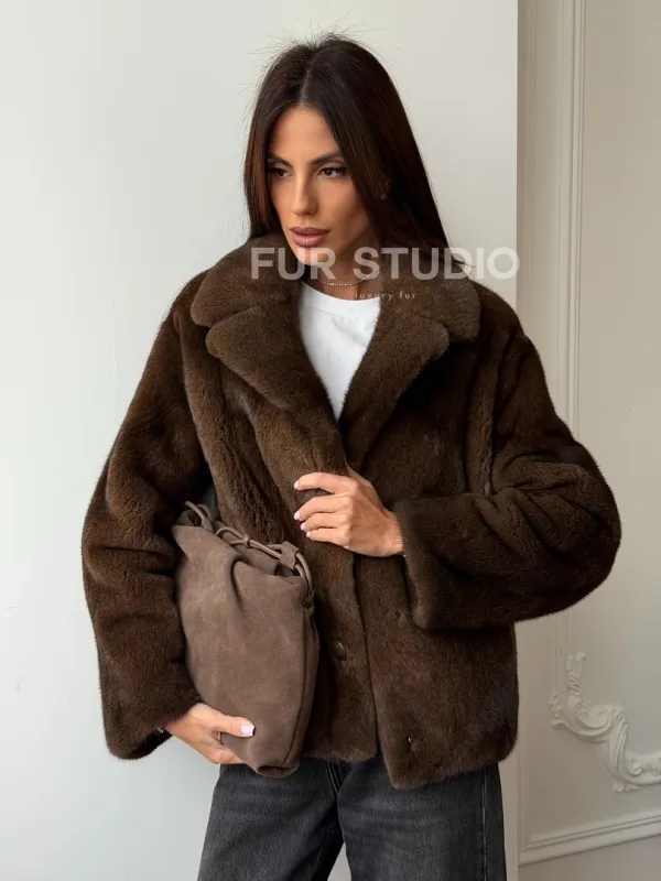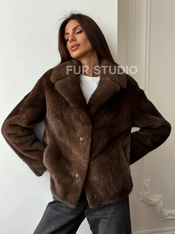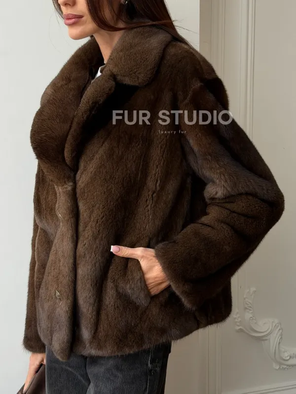 Мех данной шубы аукционная норка, цвет коричневый. Предлагается в размерах от 42 до 48. Длина модели 55-60 см, что выгодно подчеркивает фигуру девушек. Эта модель идеально подойдет для девушек и женщин, предпочитающих роскошные натуральные меха.