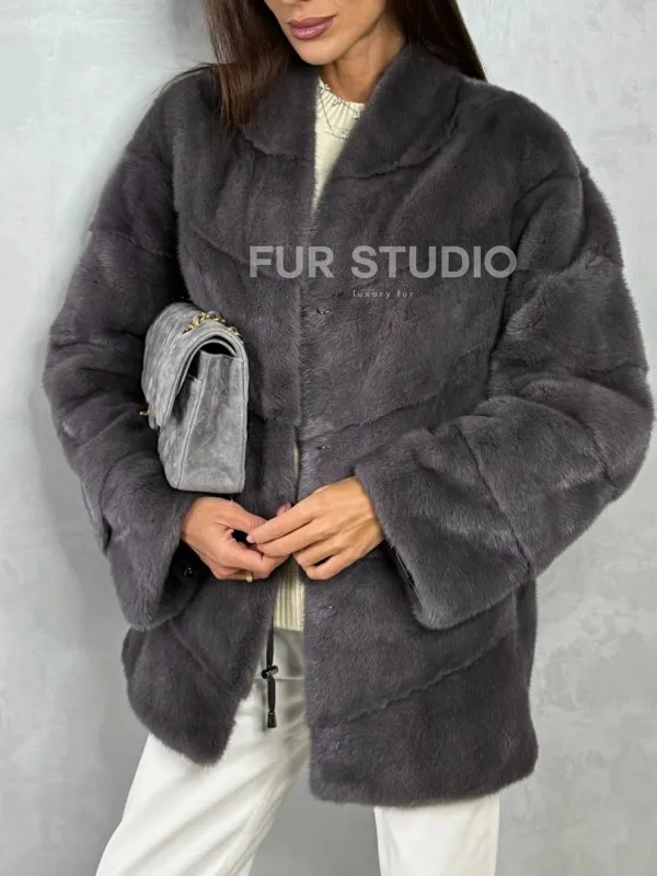 Норковый полушубок - графит 102411