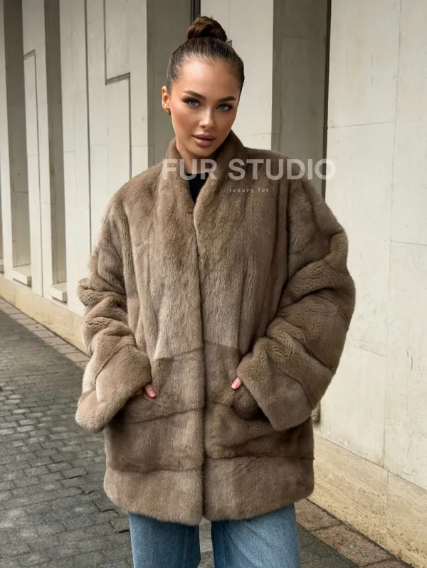 Норковый полушубок пастель V-образный воротник доступна для покупки в нашем шоуруме Furs Studio в . У нас так же есть доставка во все города России. Добавьте немного роскоши в свой гардероб с этой шубой, которая будет служить вам многие годы.