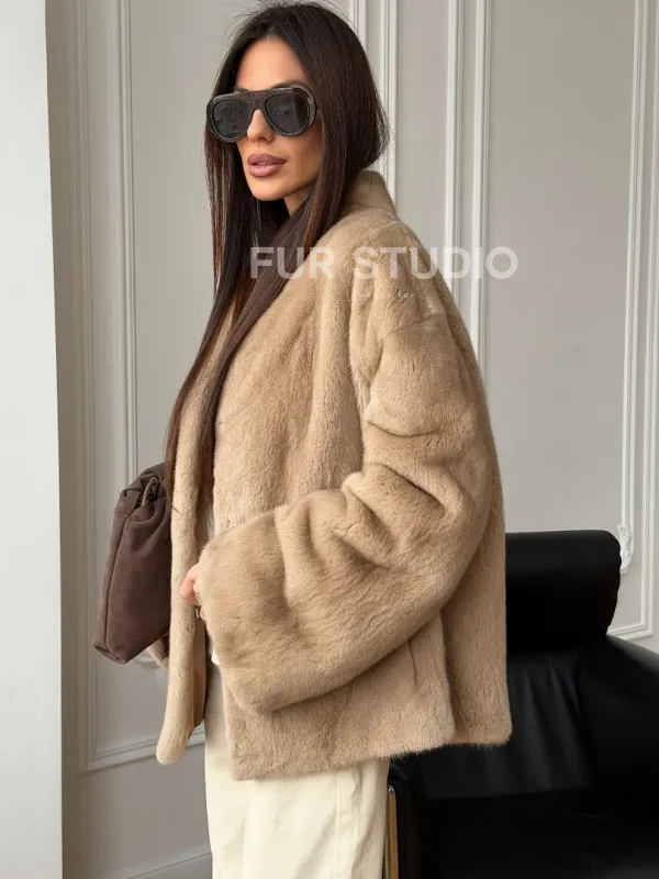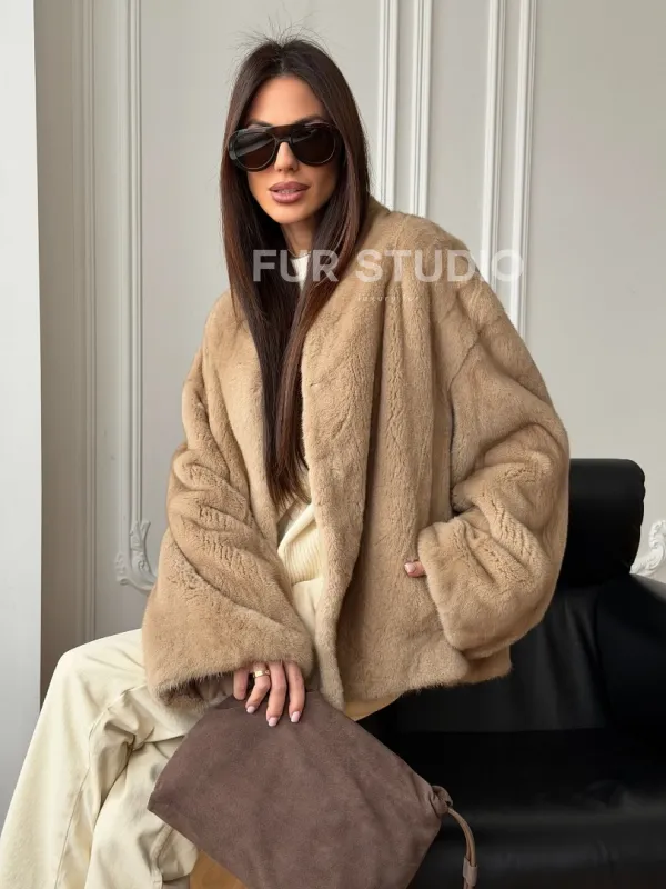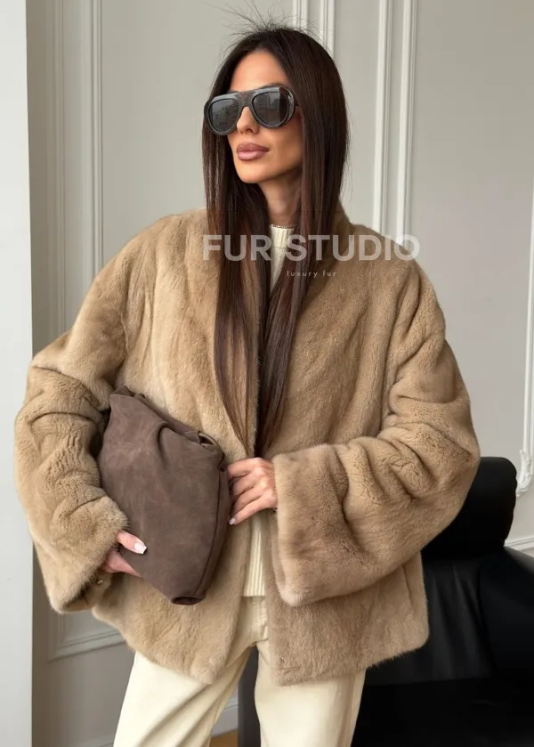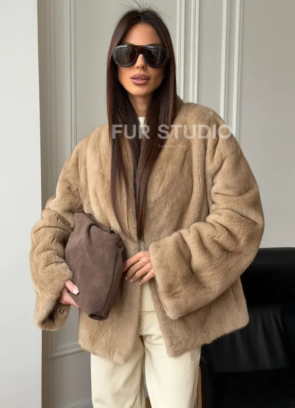 Норковый жакет (бежевый) 102560