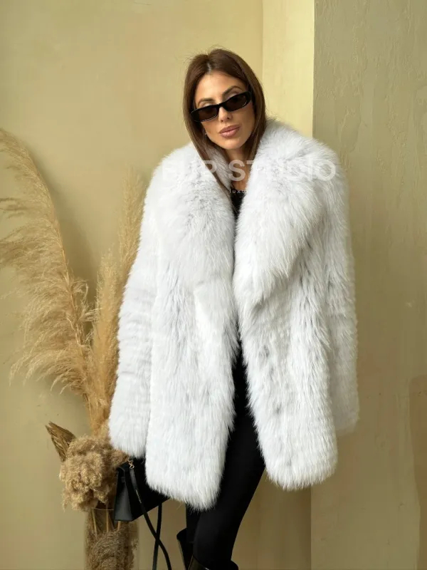 Шуба из меха белой лисы 100729