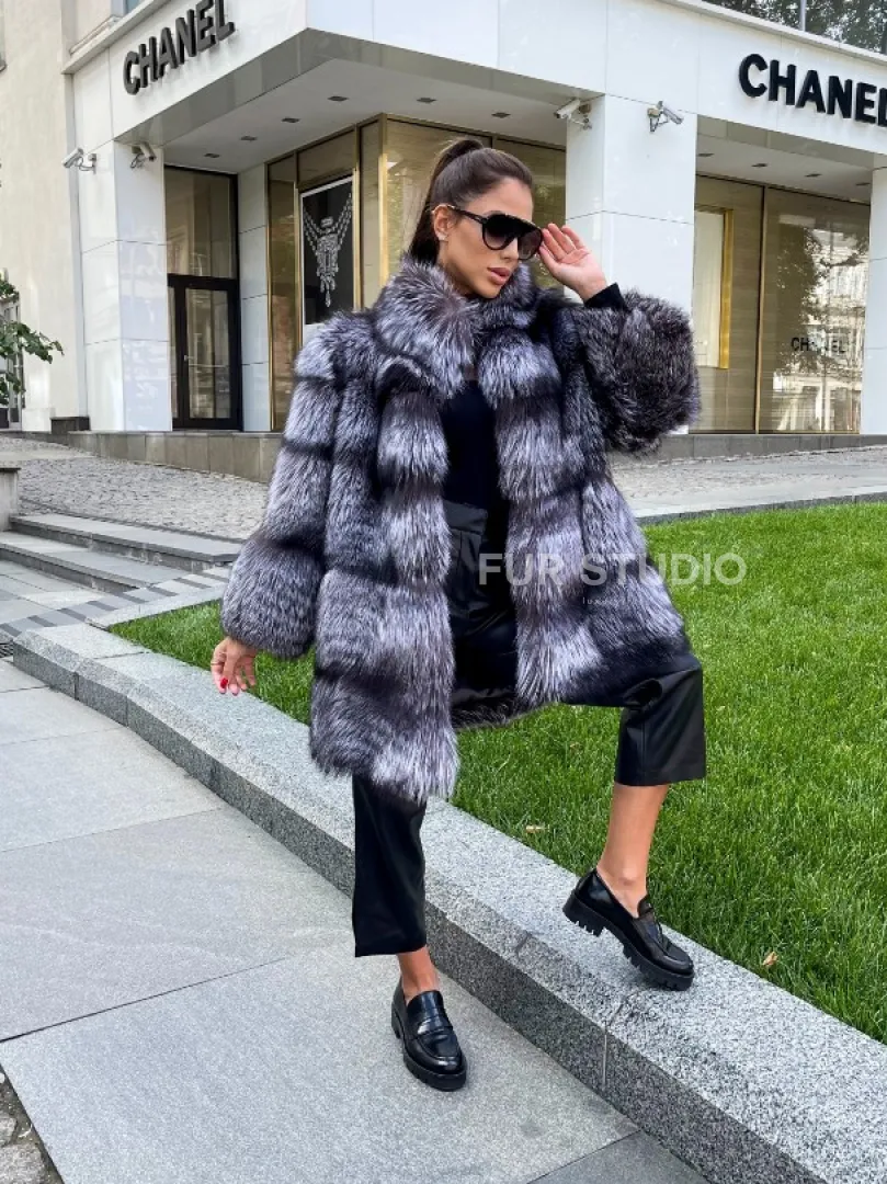 Шуба из меха чернобурой лисы 100286