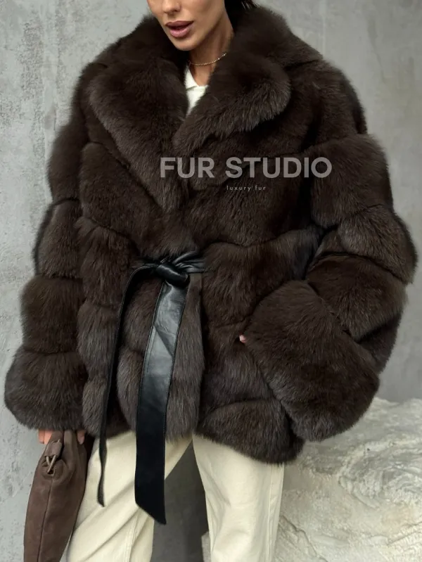 Мех данной шубы финский песец, цвет коричневый. Предлагается в размерах от 42 до 48. Длина модели 65-70 см, что выгодно подчеркивает фигуру девушек. Эта модель идеально подойдет для девушек и женщин, предпочитающих роскошные натуральные меха.