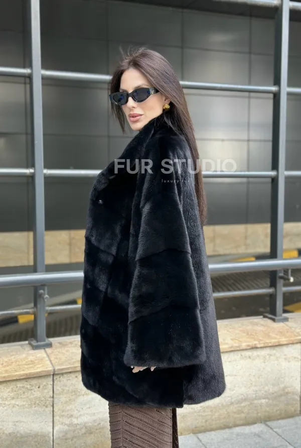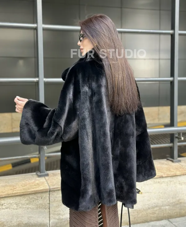 Мех данной шубы аукционная норка , цвет черный. Предлагается в размерах от 40 до 56. Длина модели 80-85 см, что выгодно подчеркивает фигуру девушек. Эта модель идеально подойдет для девушек и женщин, предпочитающих роскошные натуральные меха.