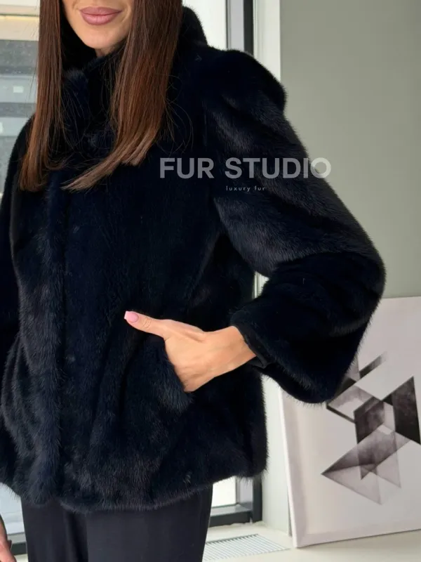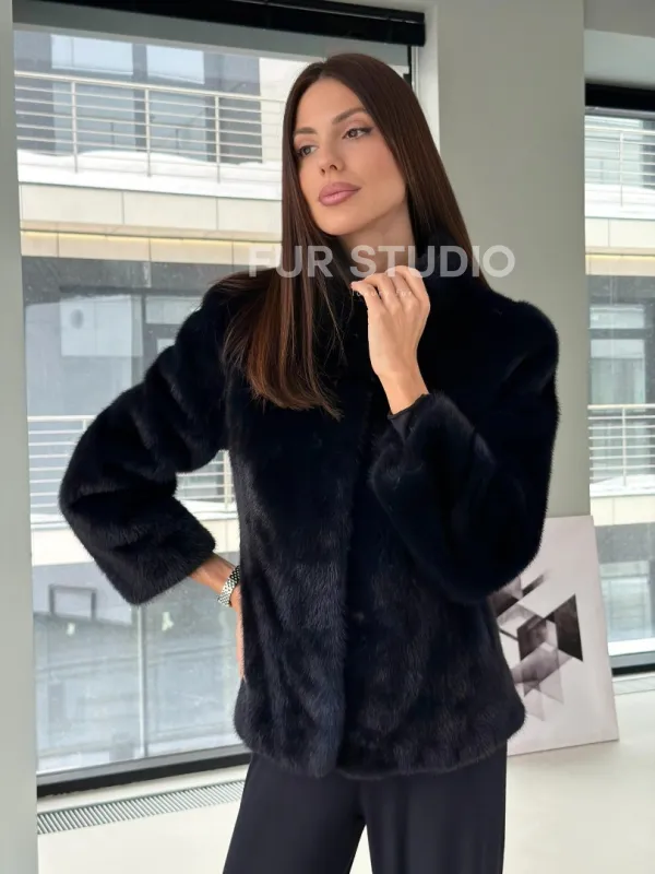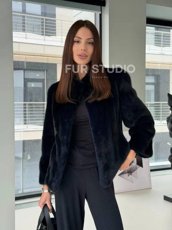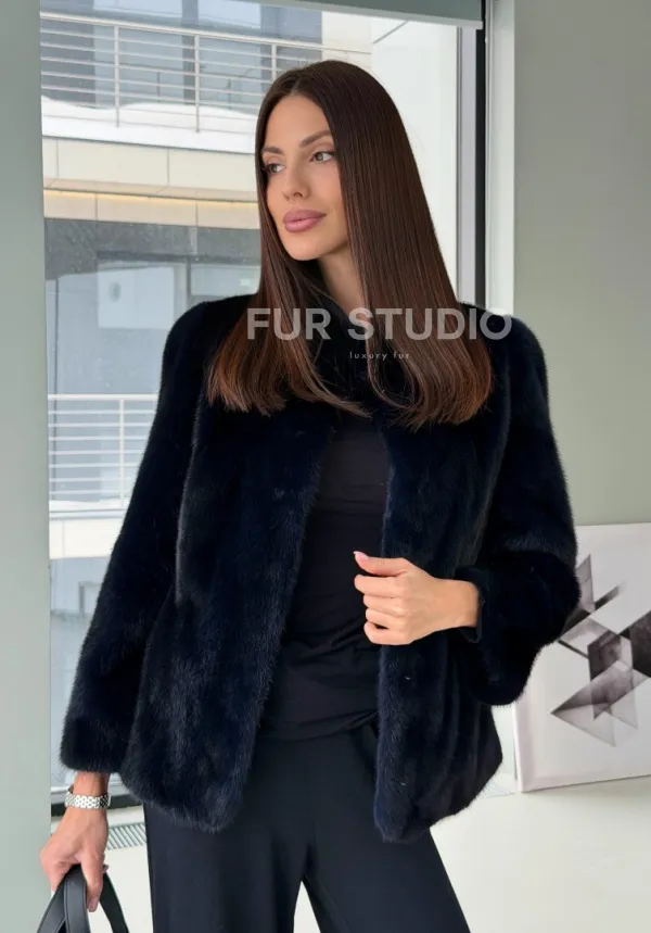 Мех данной шубы аукционная норка, цвет синий. Предлагается в размерах от 38 до 48. Длина модели 55-60 см, что выгодно подчеркивает фигуру девушек. Эта модель идеально подойдет для девушек и женщин, предпочитающих роскошные натуральные меха.
