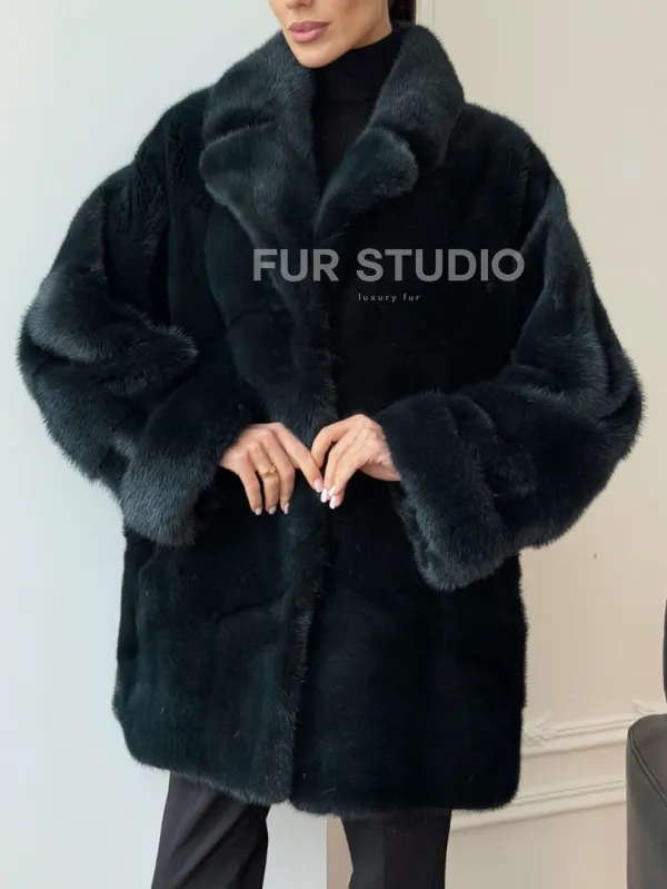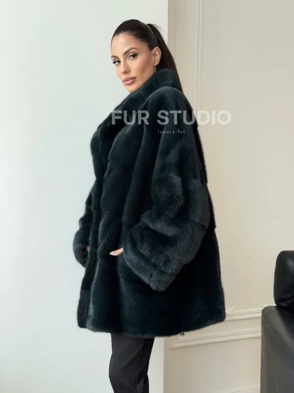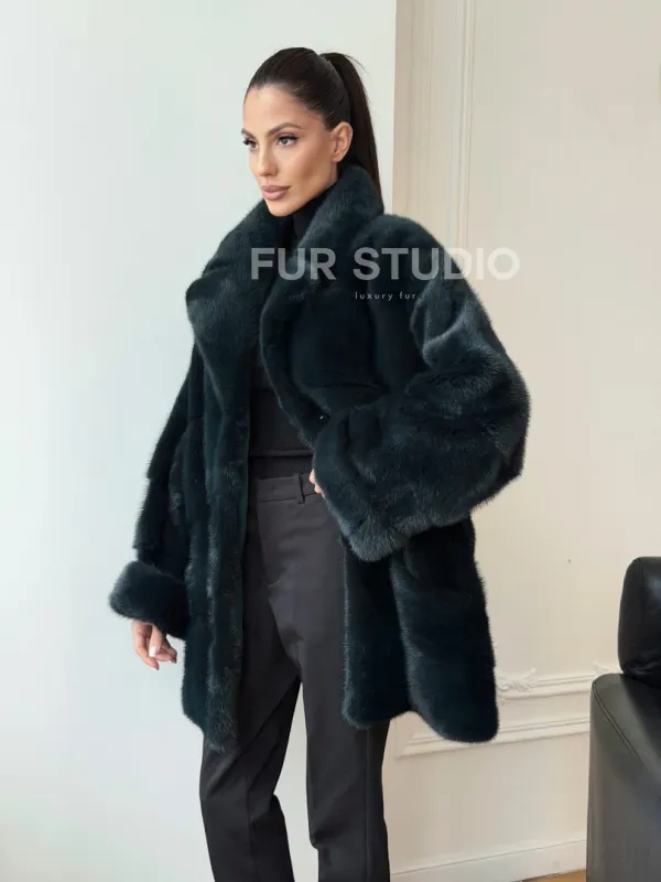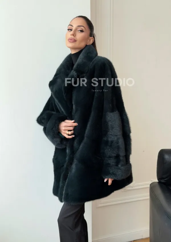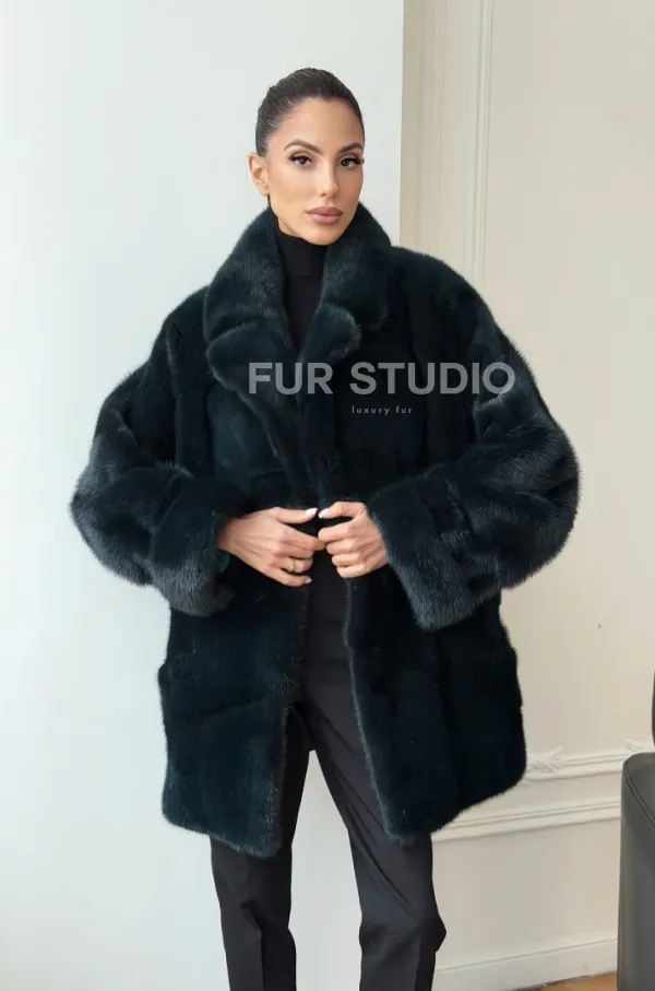 Зеленая норковая шуба - жакет 102731