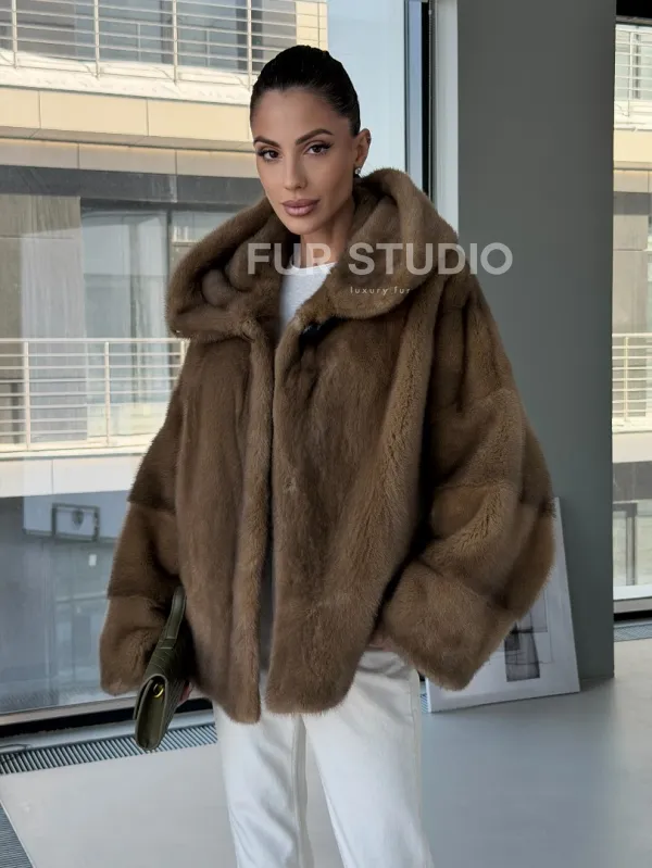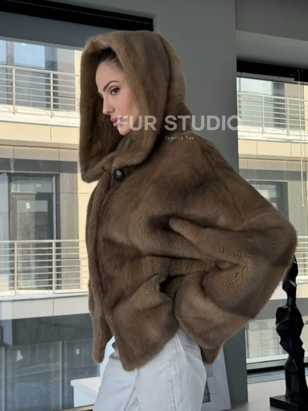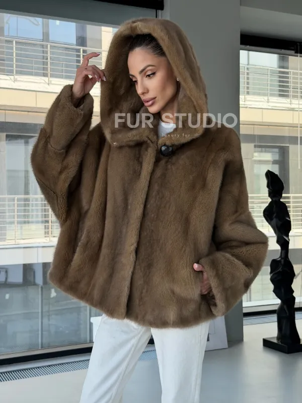 Женский норковый полушубок с капюшоном 102884
