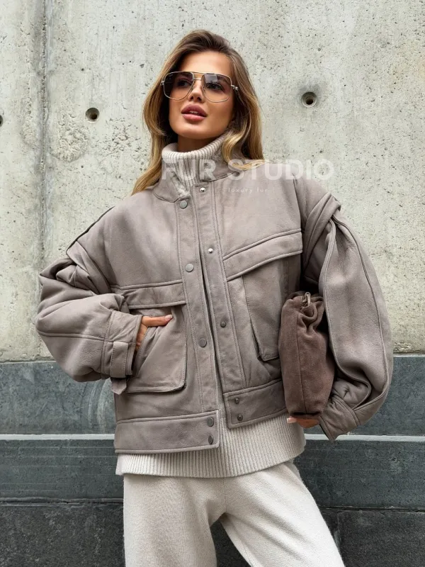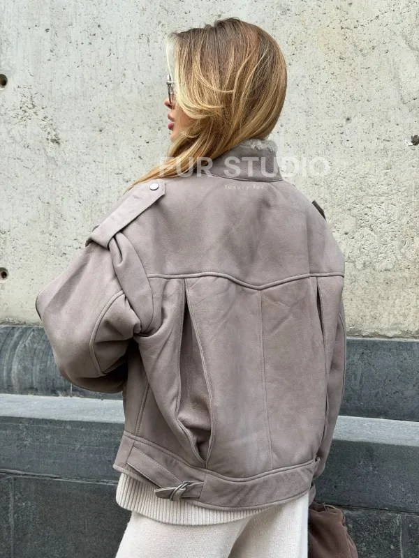 Зимняя дубленка - бомбер 102537